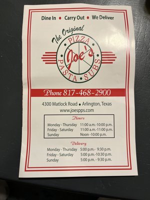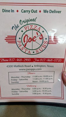 JOE’s Pizza-Pasta & Subs is located in South East Arlington, Arlington and serves local residents and visitors seeking reliable Pizza Restaurant services.
